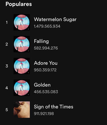 -Elabora tus playlist con enfoque Adore You incluyendo canciones como Watermelon Sugar y Sign Of The Times para aumentar sus reproducciones diarias.